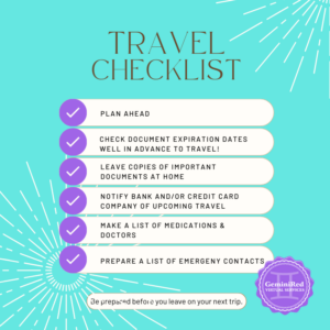 TravelChecklist-GRVS by Heather Stafford | Mar 13, 2024 | 0 commentsSubmit a Comment Cancel replyYour email address will not be published. Required fields are marked *Comment *Name * Email * Website Save my name, email, and website in this browser for the next time I comment.